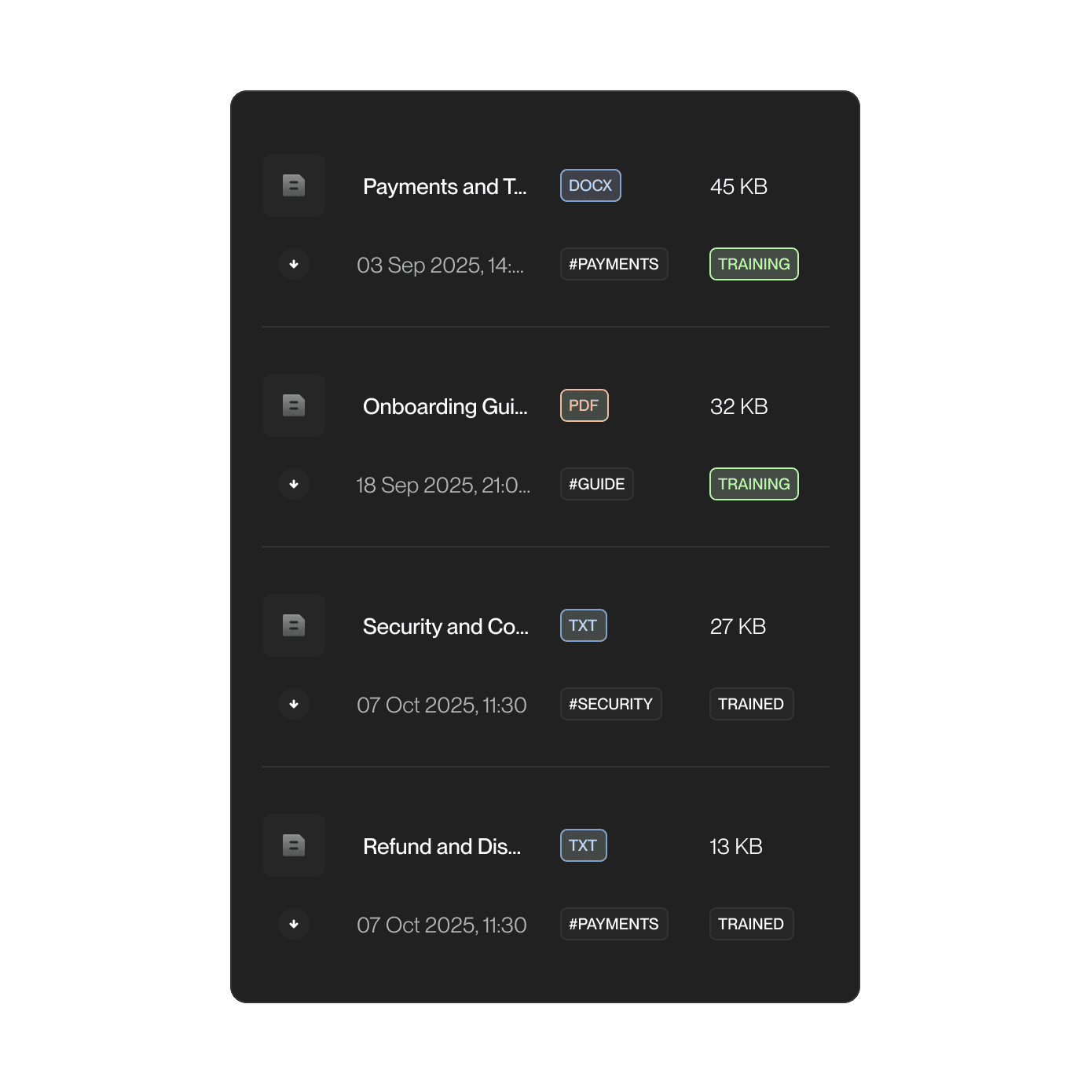 AI customer support trained on your docs, FAQ, and product materials.AI customer support trained on your docs, FAQ, and product materials.